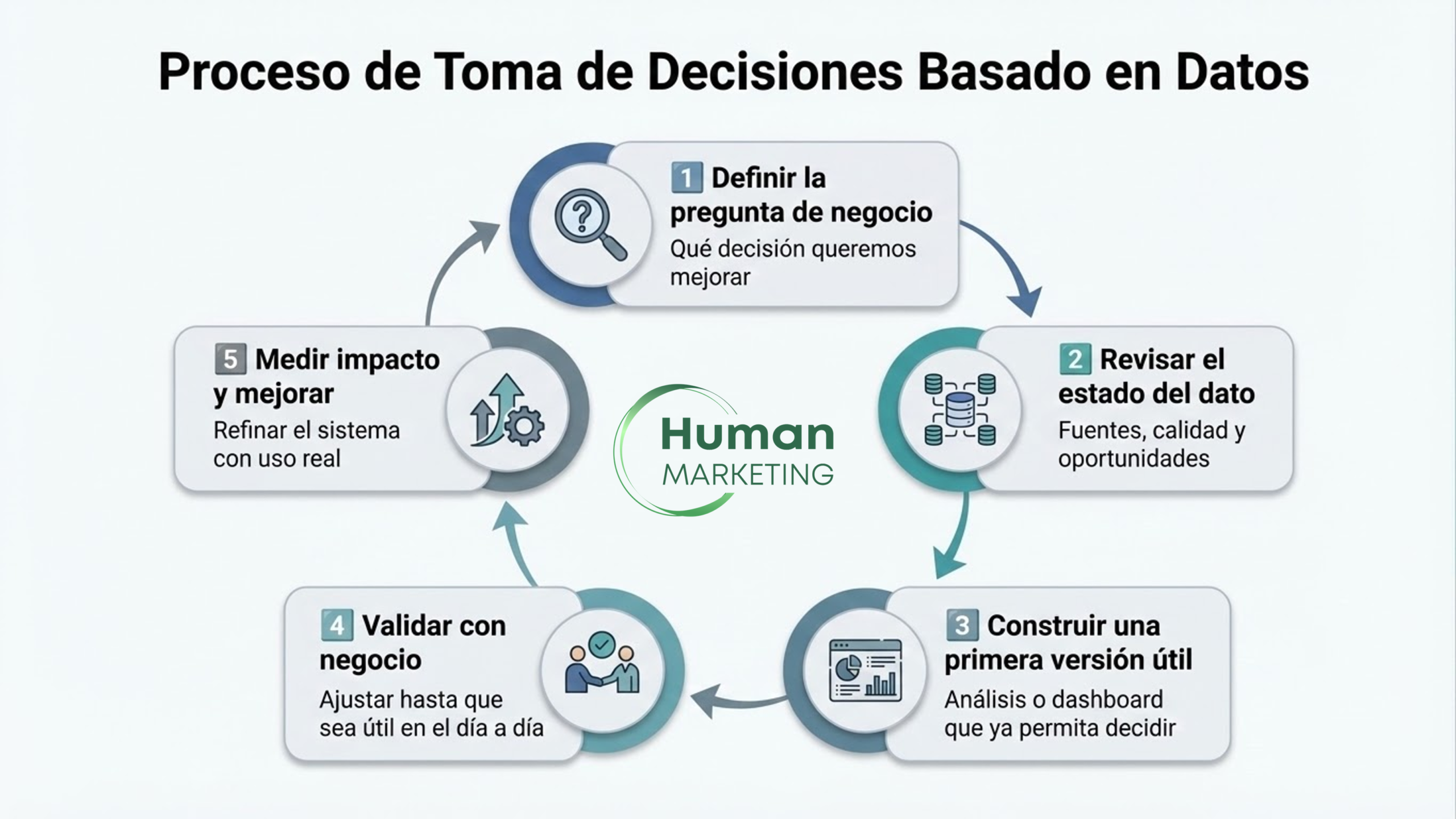 Cuéntame qué datos tienes hoy, qué decisiones quieres mejorar y qué está frenando ahora mismo.